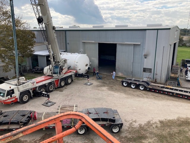 We maintain a 10-ton bridge crane with 21 ft clearance under the hook, allowing us to safely lift, move, and position tanks, vessels, and process equipment delivered by truck.